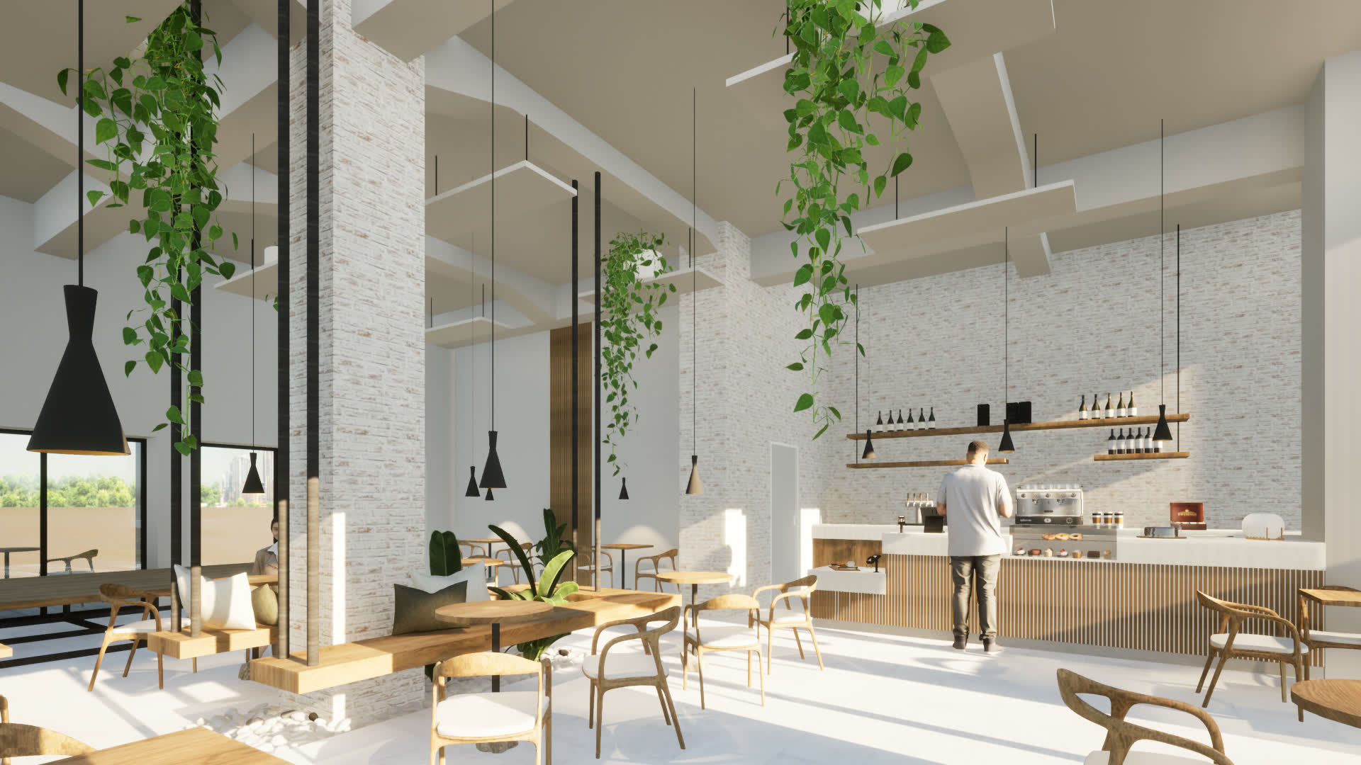La rénovation vise à sublimer l’existant en révélant ses qualités spatiales : la verrière, le patio et les volumes généreux deviennent les atouts d’une atmosphère conviviale et inspirante. Les matériaux, choisis avec soin — bois chaleureux, béton apparent, touches métalliques — dialoguent avec l’âme industrielle du site tout en apportant confort et modernité. L’aménagement intérieur, pensé pour s’adapter à différents usages, accueille aussi bien des représentations théâtrales que des moments de convivialité autour d’un café.