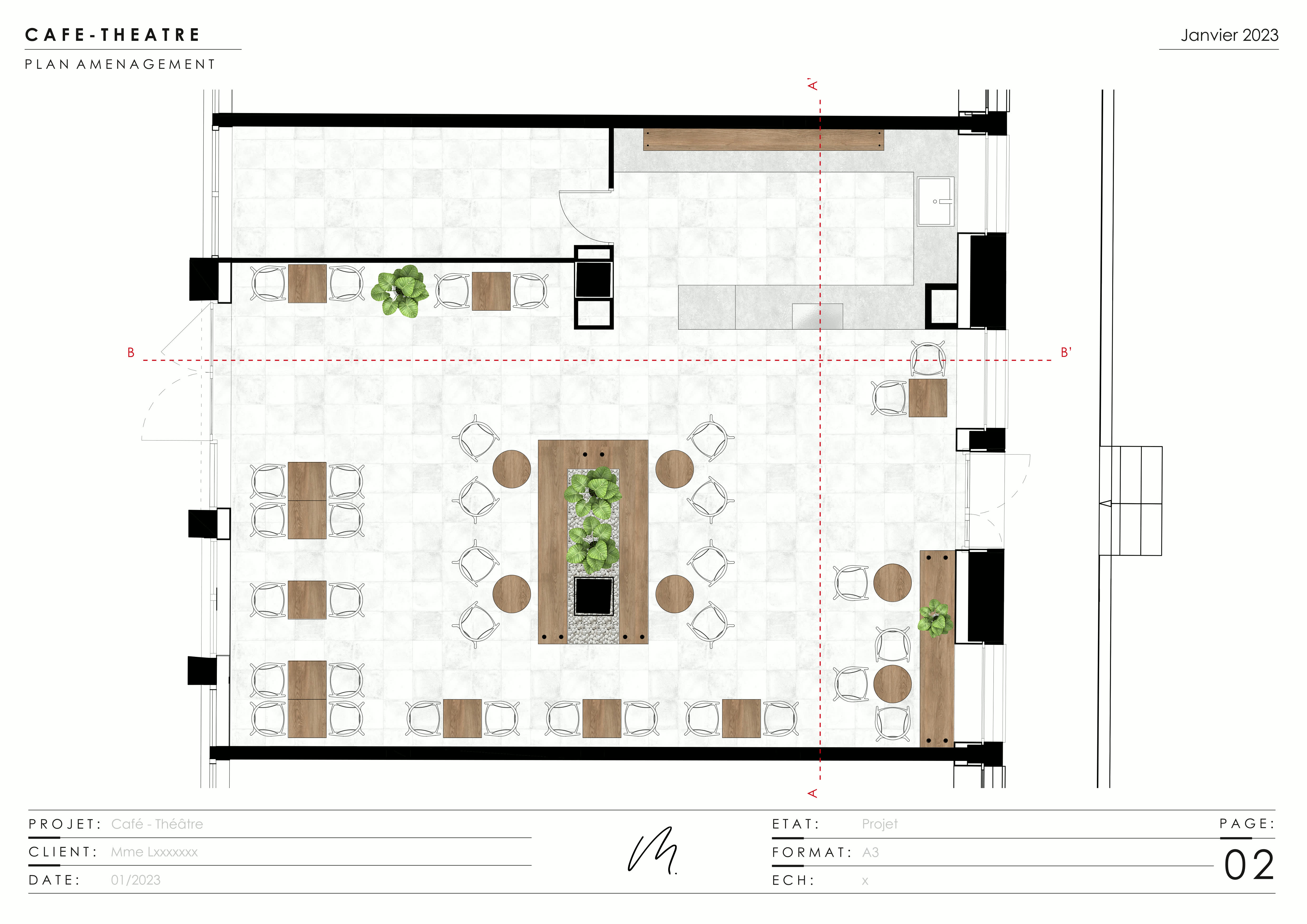 L’idée était de créer un lieu hybride, entre scène et lieu de vie, où le spectateur devient acteur de l’ambiance. Les espaces sont modulables, l’éclairage joue sur les contrastes et les circulations s’organisent autour du patio central, favorisant les échanges et la fluidité. Une attention particulière a été portée à l’accessibilité, pour que chacun puisse profiter de l’expérience.