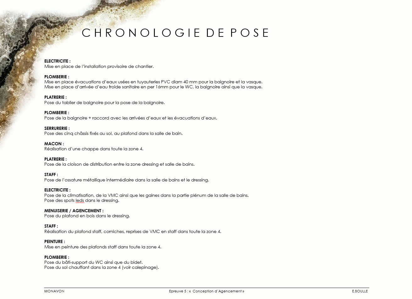 Plomberie, électricité, menuiserie, staff, cloisonnement… Tous les corps de métier sont intégrés dans une chronologie de pose et un dossier technique complet, garantissant la fluidité et la qualité de l’exécution.